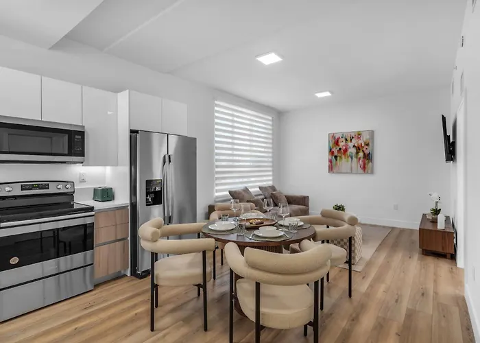 Maak uw verblijf nog aangenamer in het appartement met een ingerichte kitchenette, ingericht met een koffie/theezetapparaat, een koelkast en een oven voor uw comfort. De Northwest 7th Street & Northwest 15th Avenue bushalte bevindt zich op een paar stappen verwijderd van de 2-badkamer accommodatie.